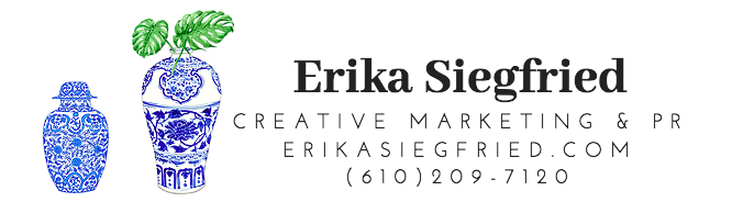 Erika Siegfried is a Communications, Marketing, and PR Consultant living on Philadelphia’s Main Line. With strong writing skills and a background in communications, Erika meticulously conveys client trends to visual artists, small businesses, and brands to assist in targeting their products/services to their preferred client bases.